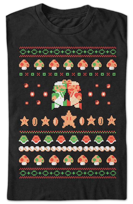 Luigi And Mario Faux Ugly Christmas Sweater Nintendo T-Shirt