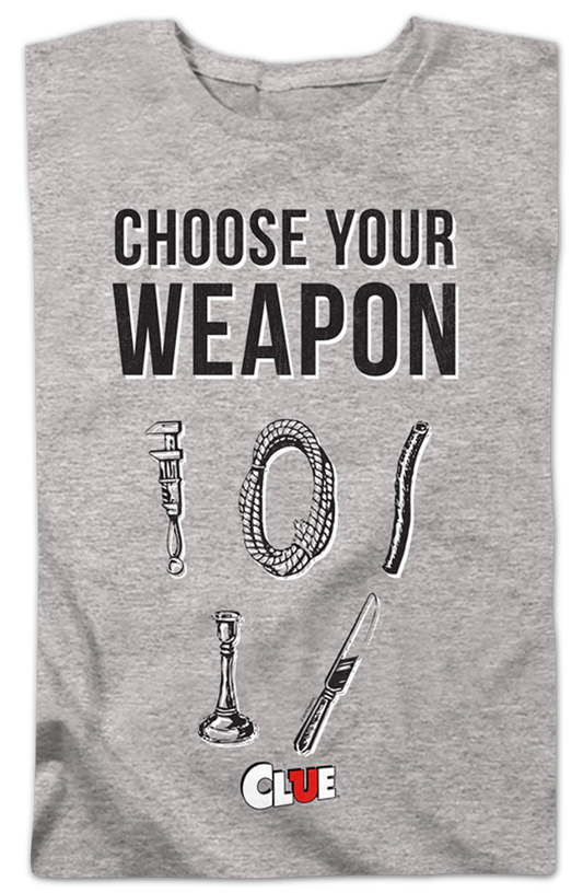 Womens Choose Your Weapon Clue Shirt