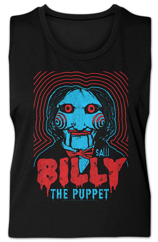 Ladies Vintage Billy the Puppet Saw Muscle Tank Top