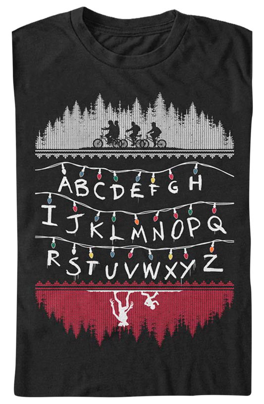 Faux Ugly Knit Christmas Lights Stranger Things T-Shirt