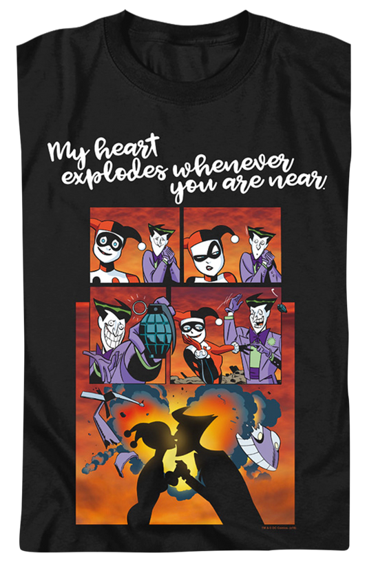 Harley Quinn And The Joker Heart Explodes DC Comics T-Shirt