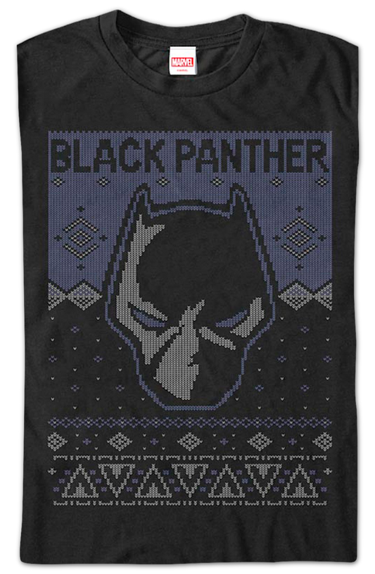 Black Panther Mask Faux Ugly Christmas Sweater Marvel Comics T-Shirt