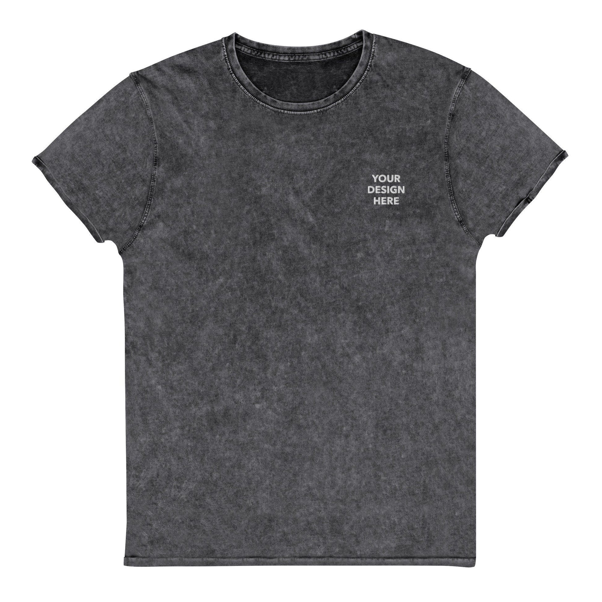 Personalized Embroidered Denim T-Shirt, Customized Logo Denim T-Shirt, Embroidery With Your Own Text or Design, Handmade Denim Tee